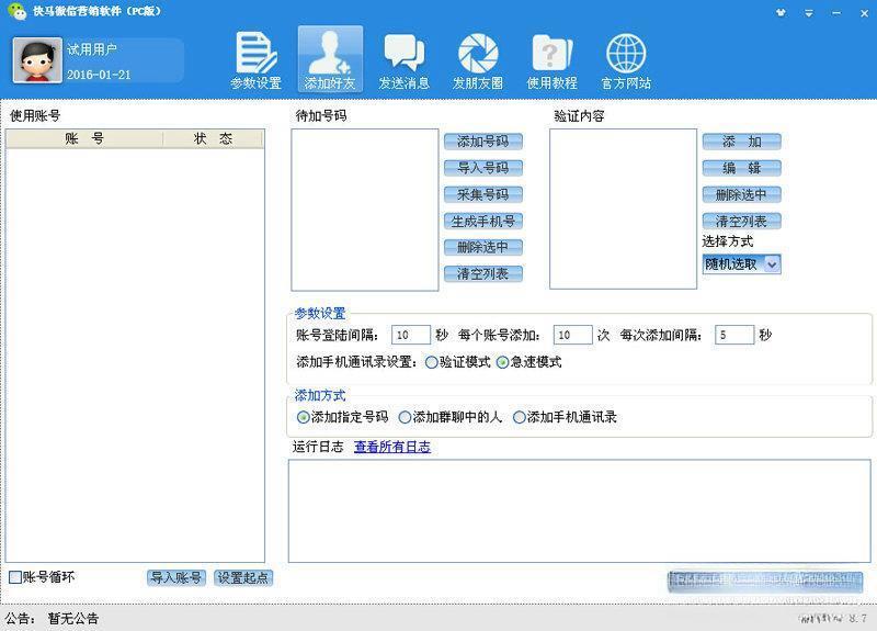 2、自动导入,批量添加:如果你有精准的客户QQ号、手机号、微信号,可以直接导入到快马营销软件,批量添加对方为微信好友;